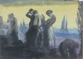 Opera firmata al fronte in basso a destra: "C. Banti". carta adesiva applicata ai margini sul retro.