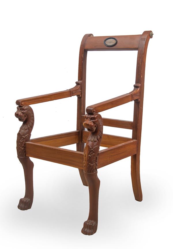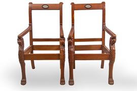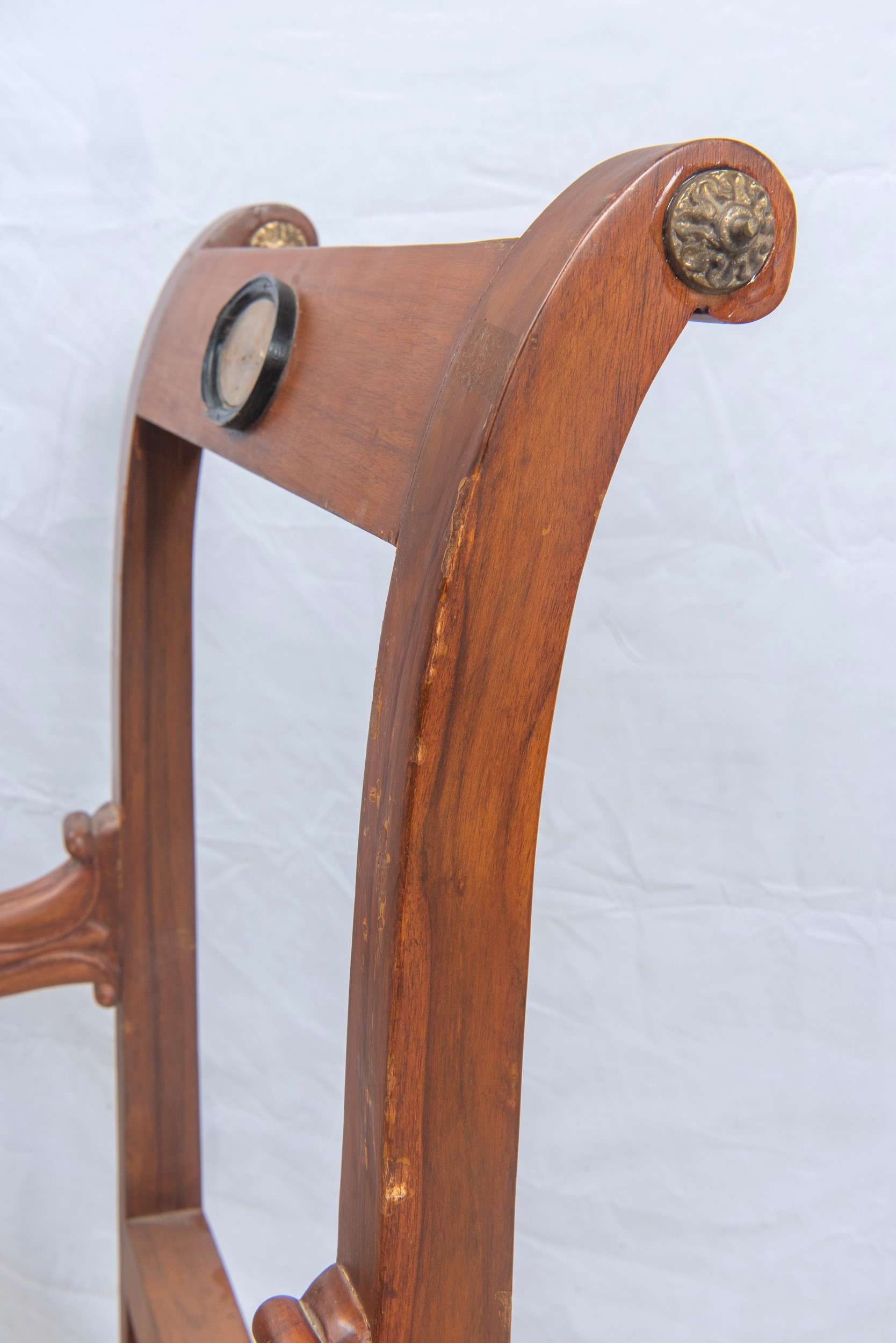 in legno di mogano, con applicazioni in bronzo dorato e specchiature ovali in alabastro orientale. Prive di tappezzeria