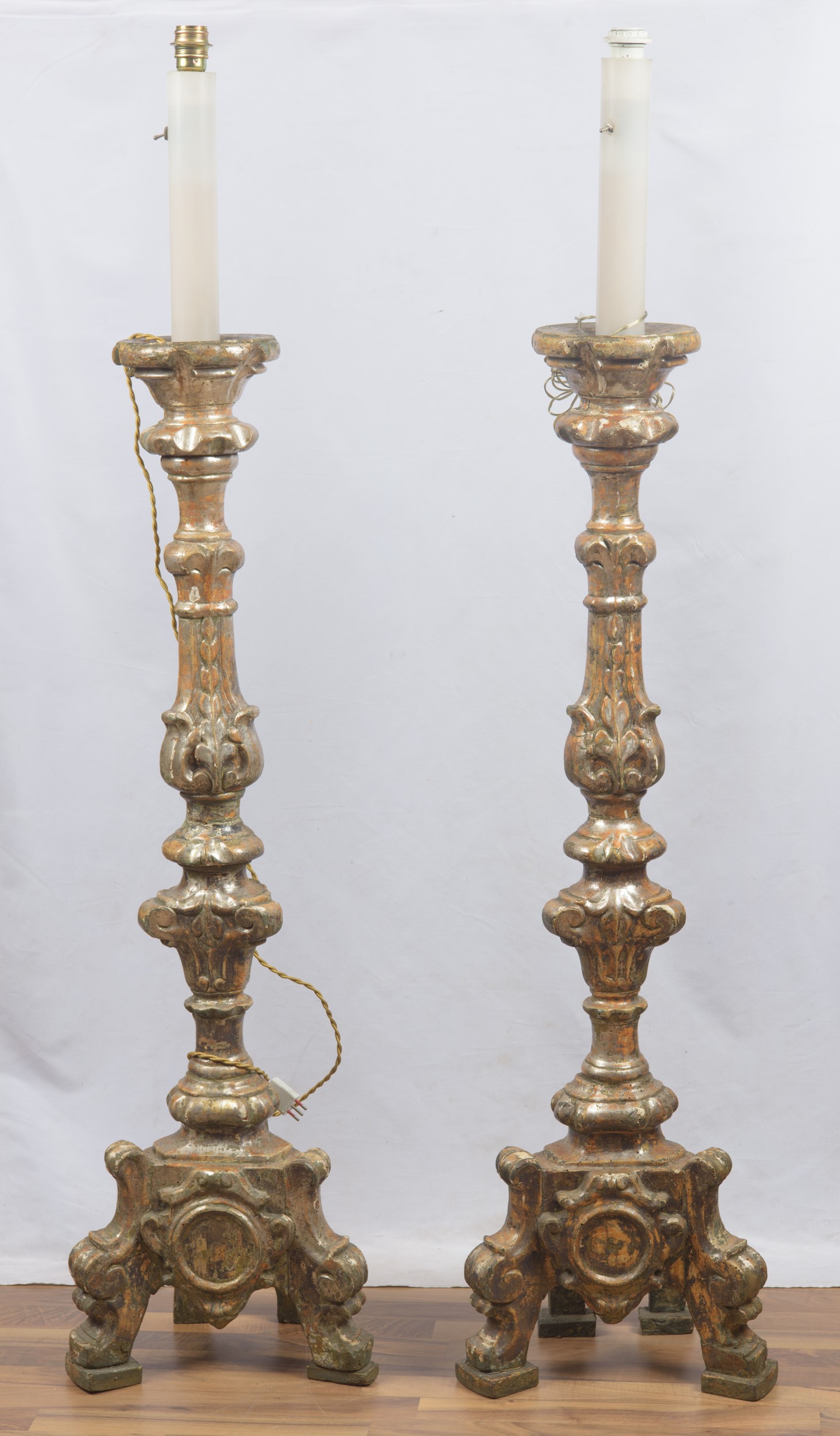 Difetti e mancanze. Con grandi paralumi in seta (H. 57 cm).