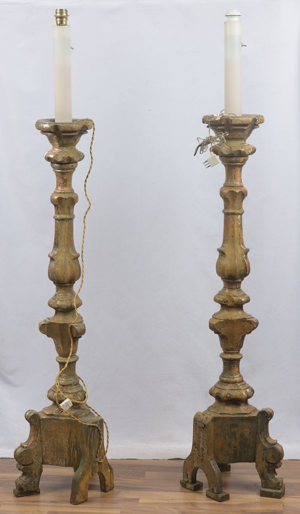 Coppia di torcieri portacandela, Manifattura napoletana - XVIII sec.
