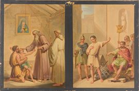 Coppia di dipinti raffiguranti quattro episodi biblici