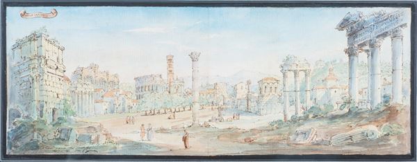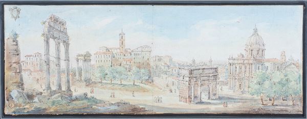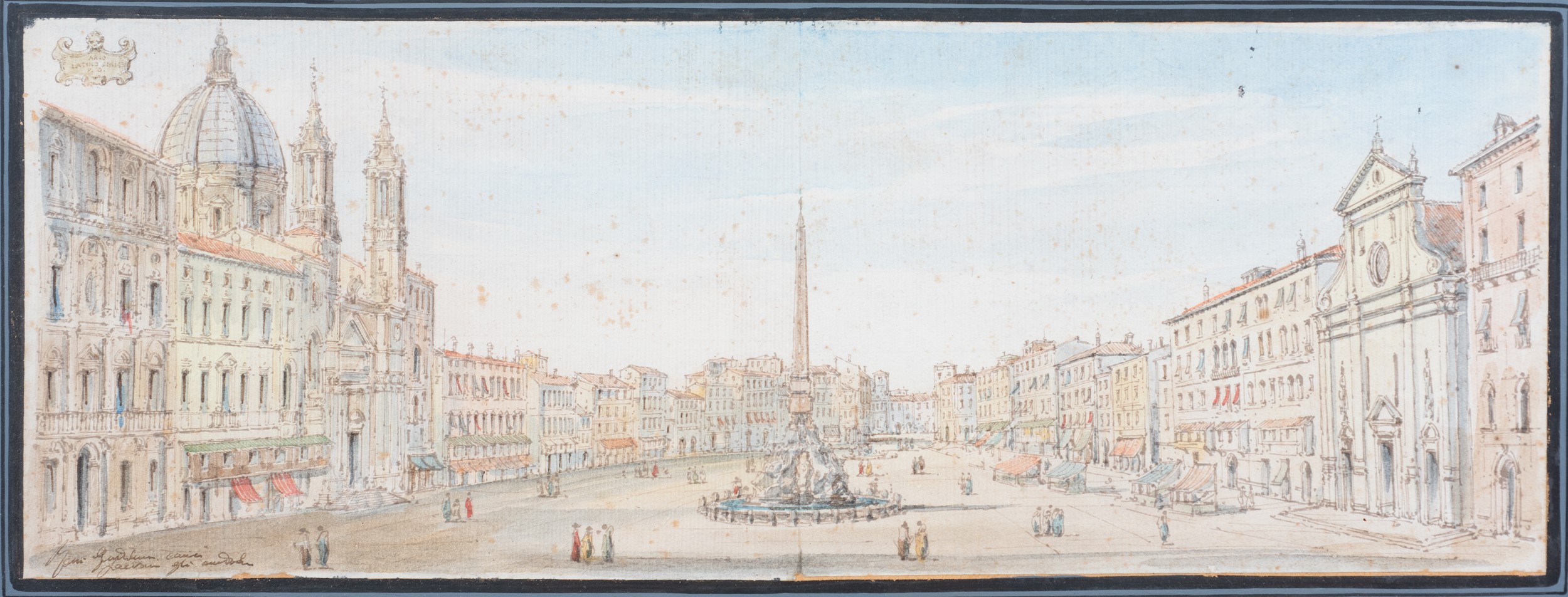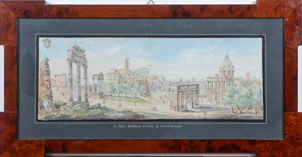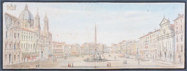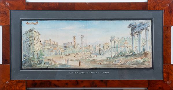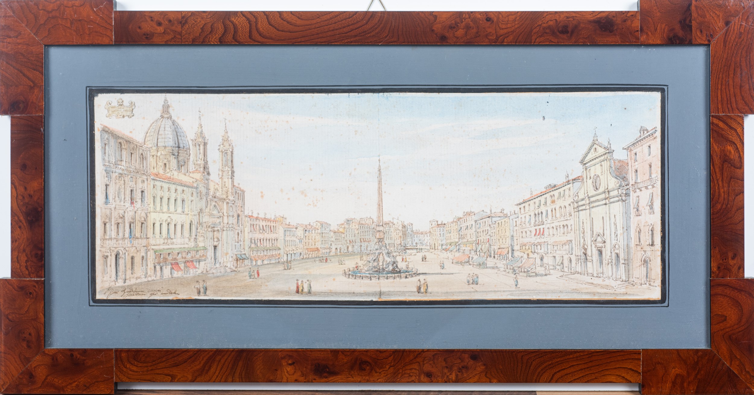 Veduta di Piazza Navona, veduta del foro romano verso il Campidoglio e veduta del foro romano verso Santa Francesca Romana. Entro cornici del XX secolo.