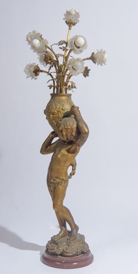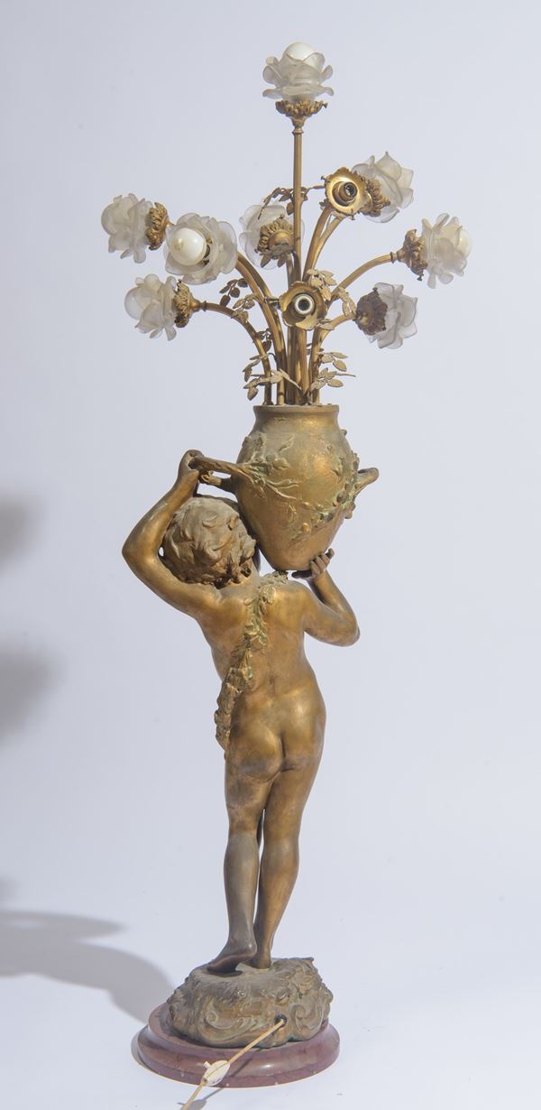 Lume raffigurante putto che sorregge un vaso