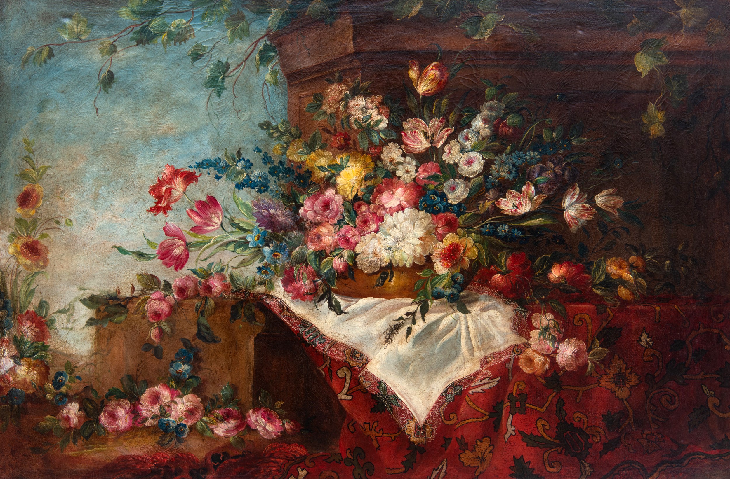 Natura morta con cesto di fiori, Scuola italiana - metà del XIX sec.