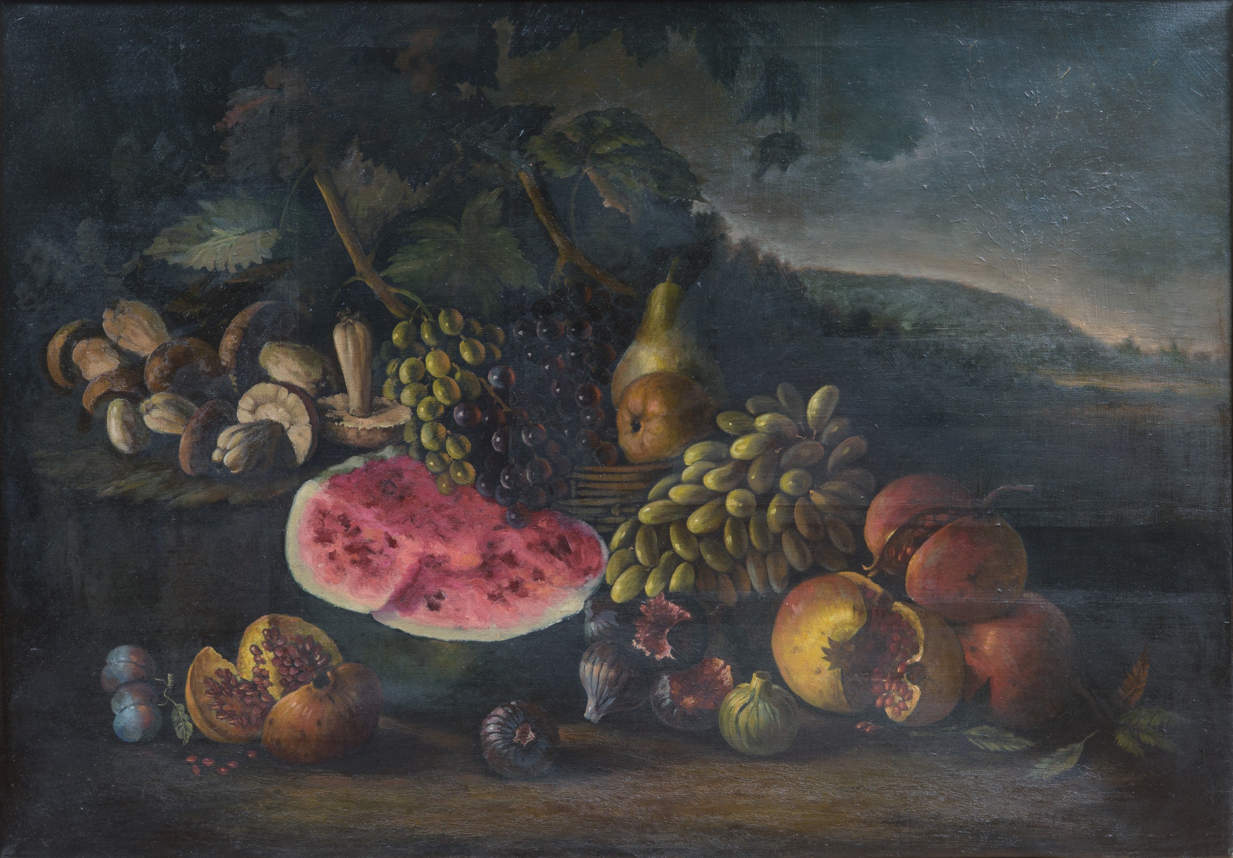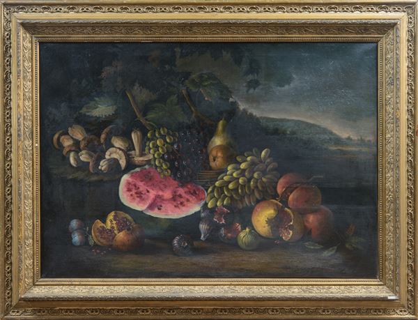 Natura morta con funghi, uva, anguria e melograni, Scuola italiana - XIX secolo
