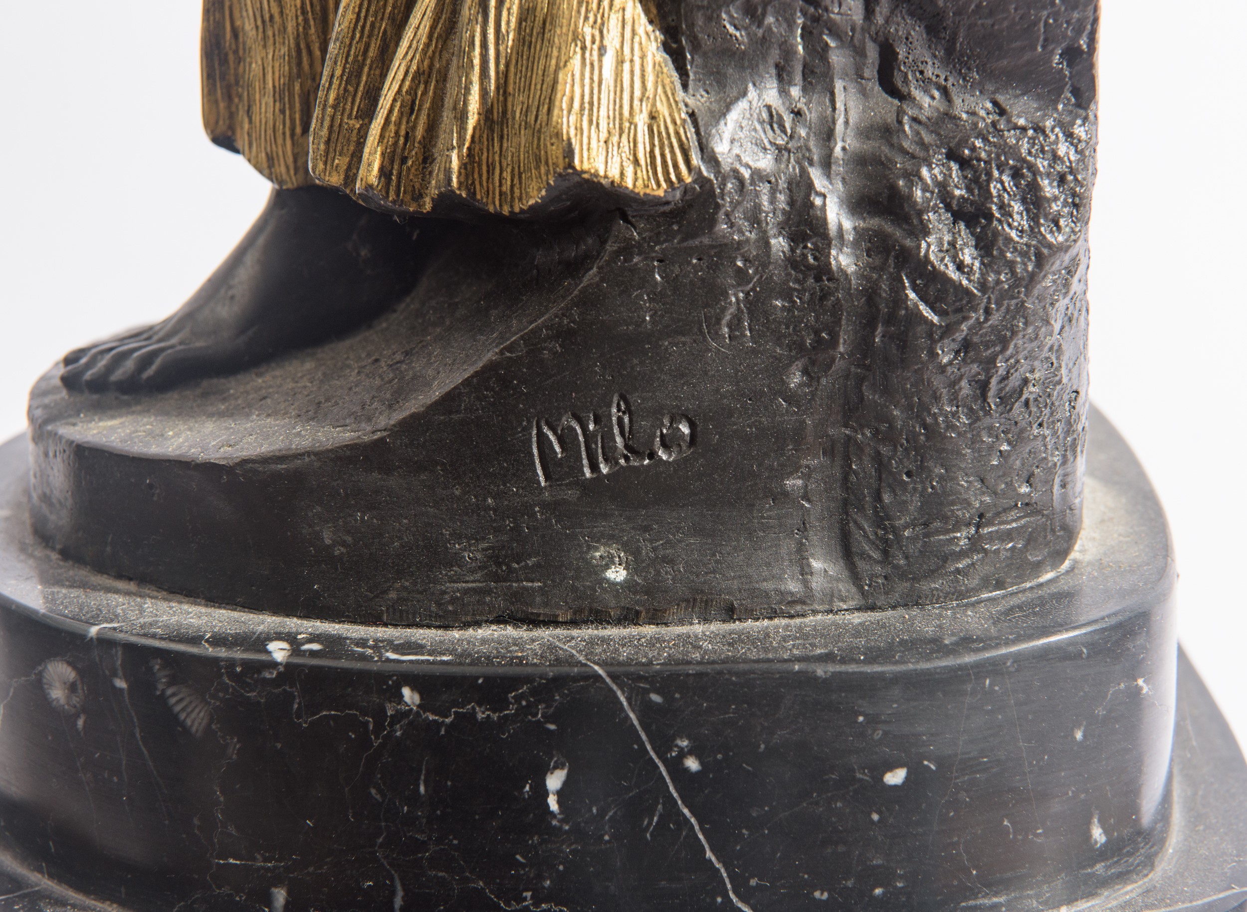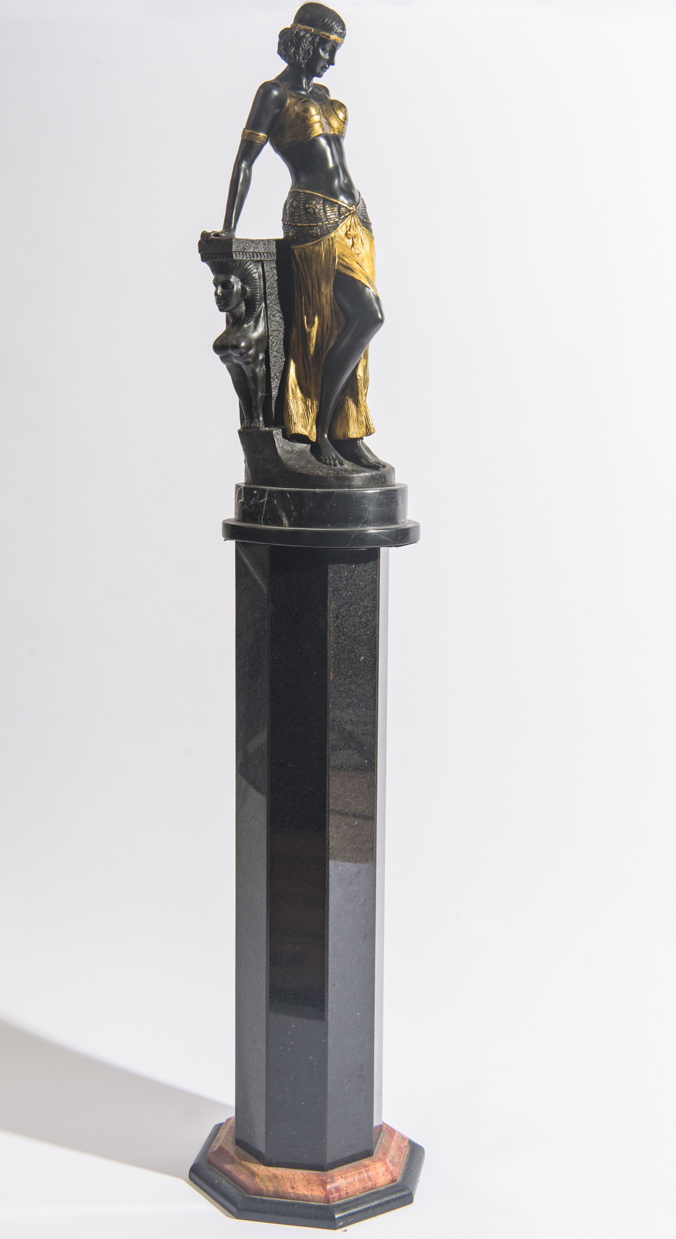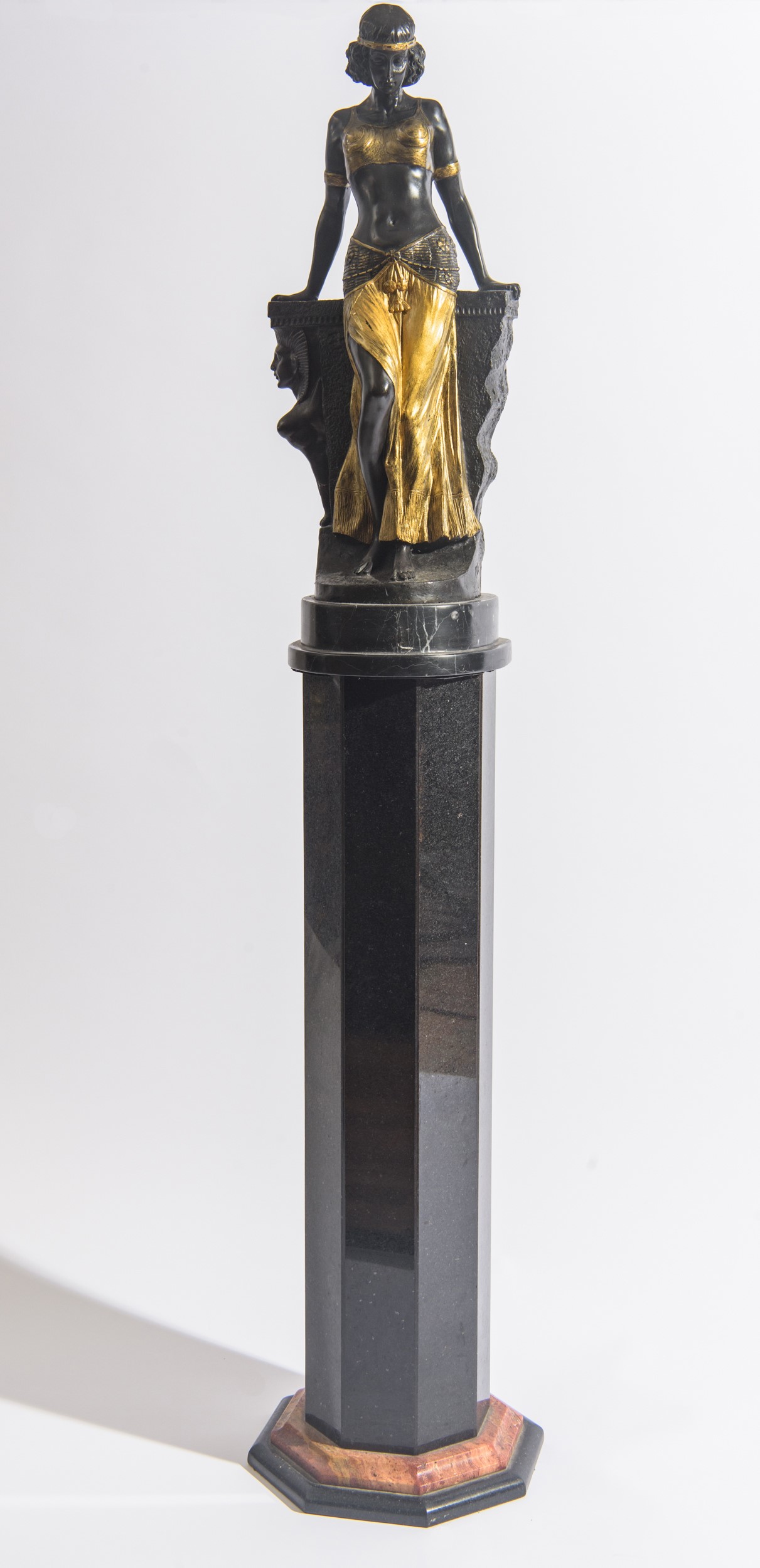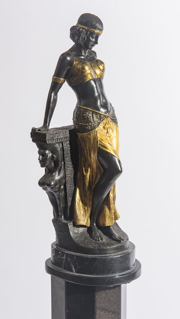 in bronzo brunito e dorato, con basamento di forma ottagonale in marmo nero.