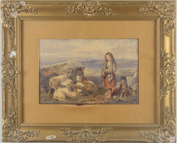 Contadinella con armenti e cane