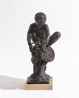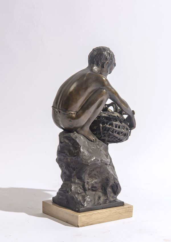 scultura in bronzo a patina bruna, firmato in basso