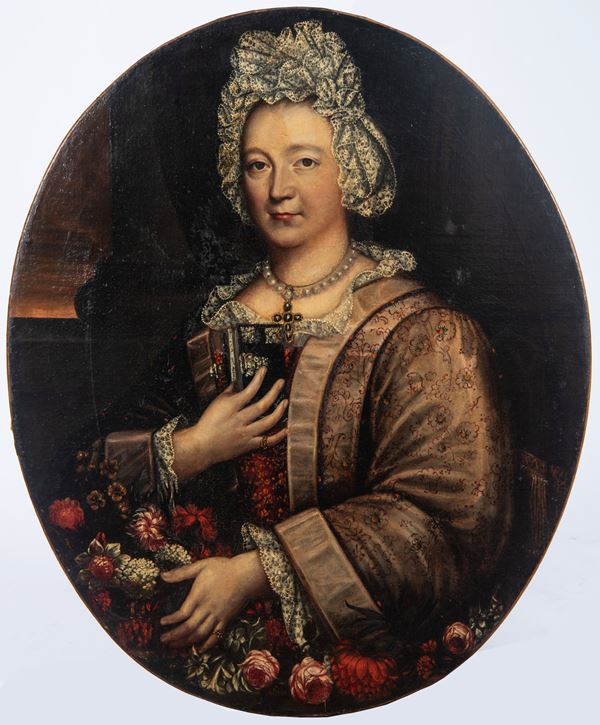 Ritratto di nobildonna con fiori, Scuola piemontese - XVII secolo.