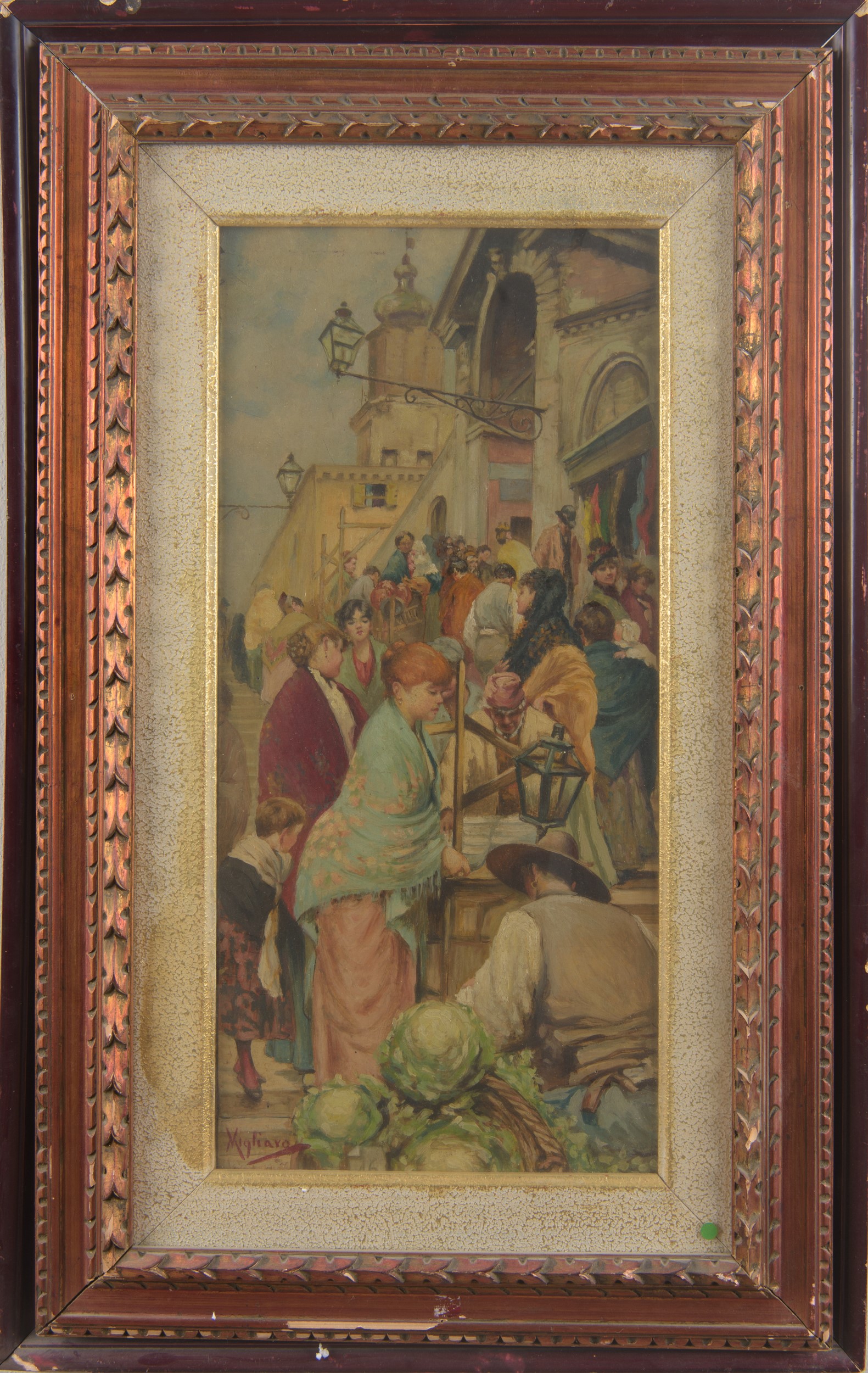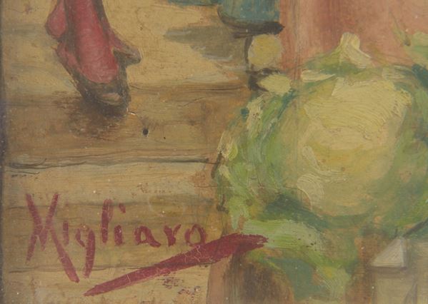 Firmato in basso a sinistra "Migliaro". Iscrizione al retro "opera autentica originale Vincenzo Migliaro Guido Guida". Entro cornice