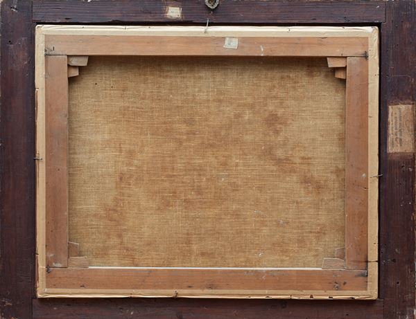 Al retro della cornice: etichetta dell'"Associazione degli Artisti Italiani, II Esposizione 1906-1907". In cornice.