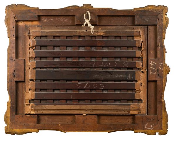 Entro cornice coeva. Fenditura orizzontale lungo la superficie della tavola