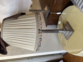 Coppia di lampade in bronzo argentato, XX secolo