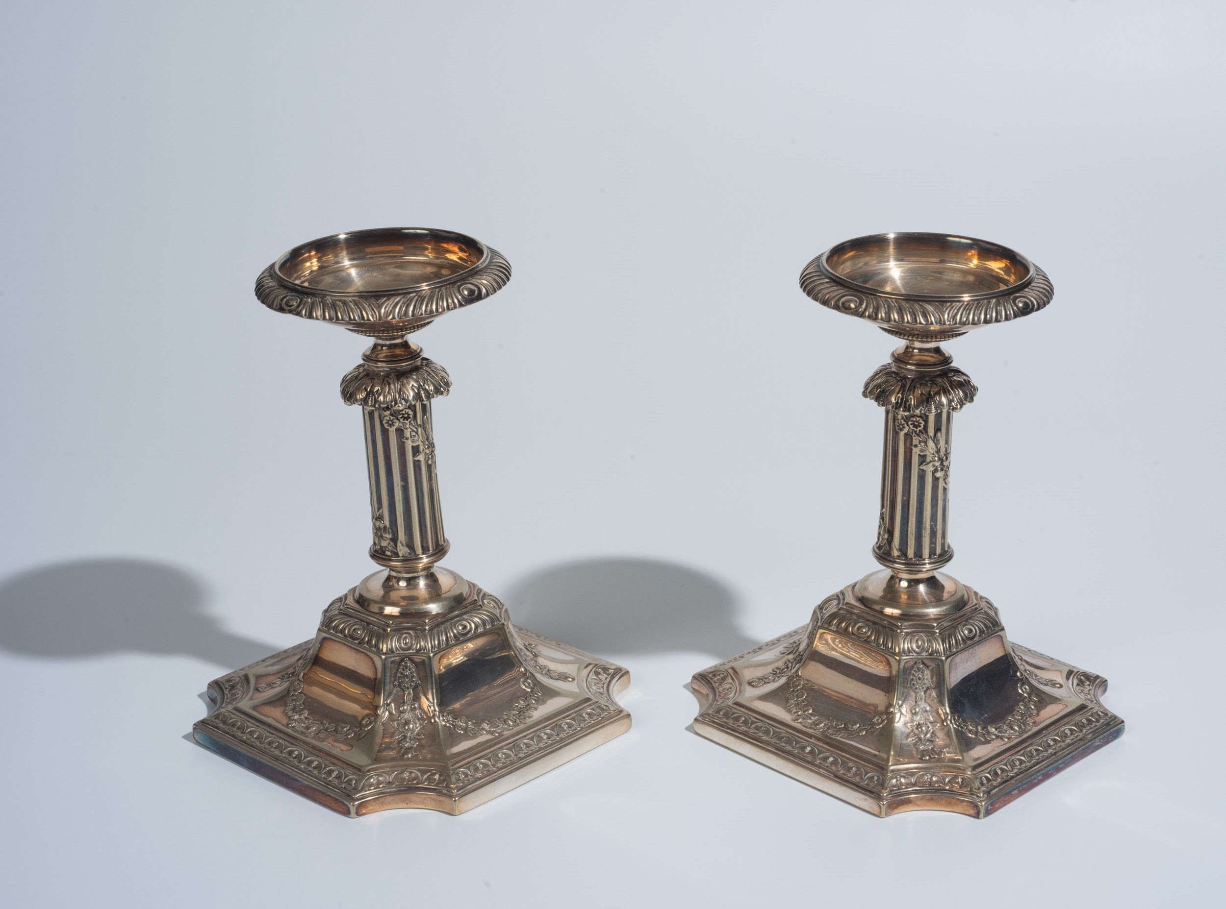 Coppia di portacandela in Sheffield, Inghilterra, inizio XX secolo