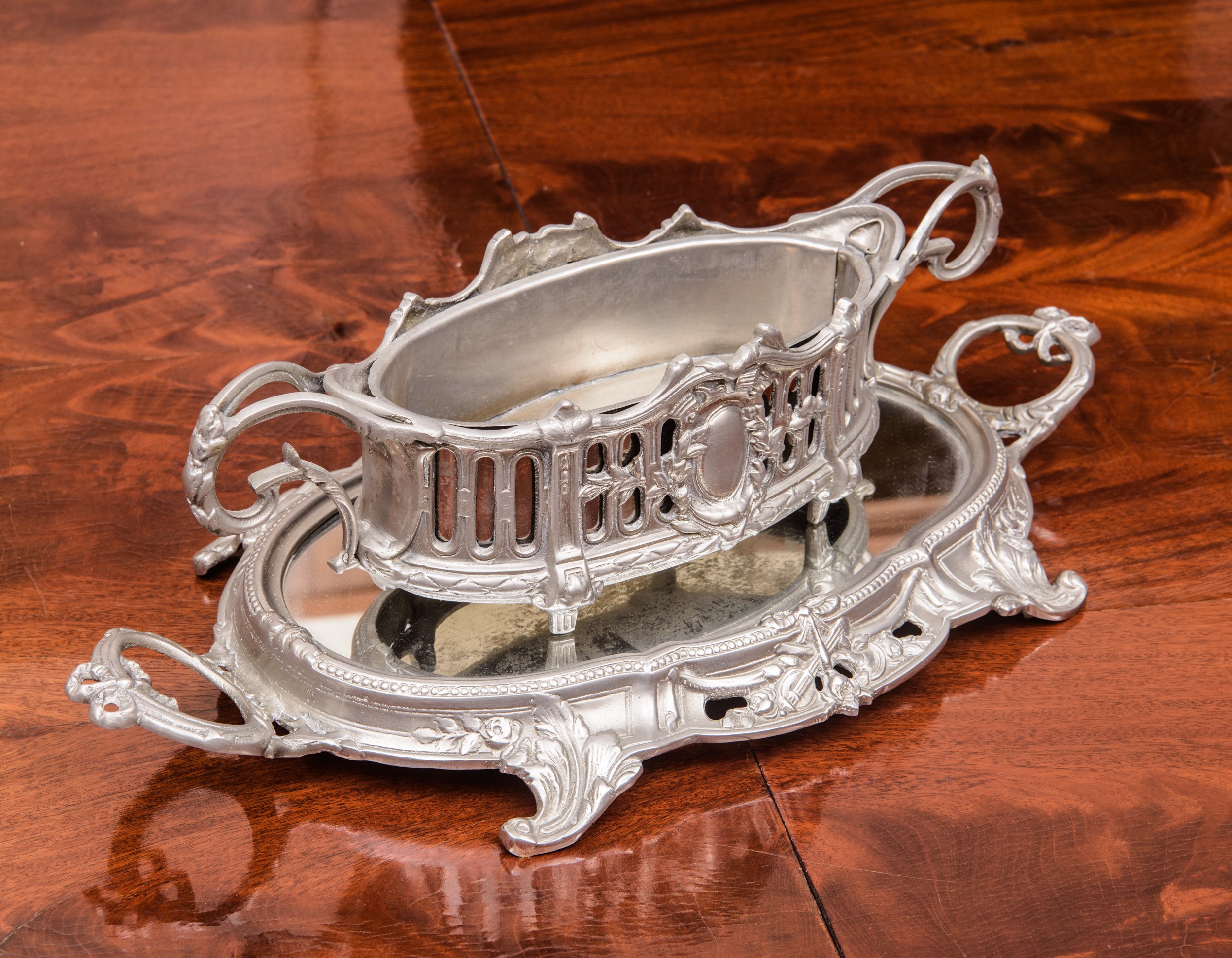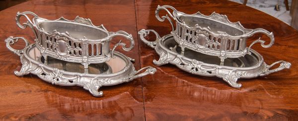 Coppia di Sortout in metallo argentato, XX secolo