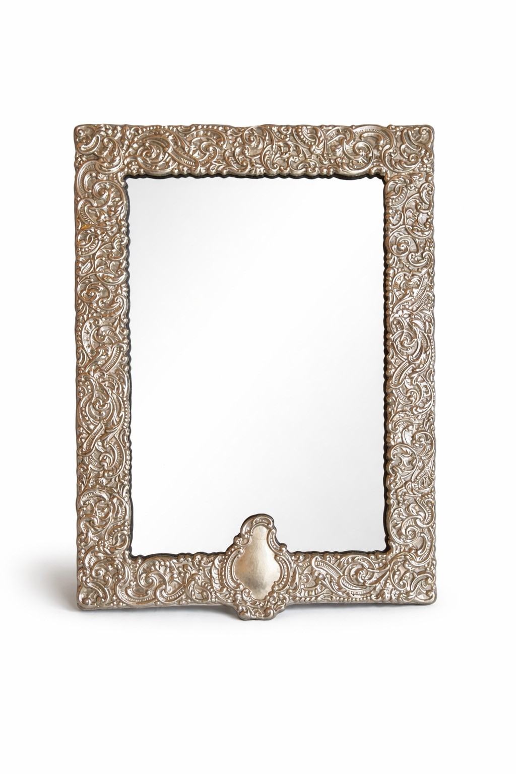 Cornice in lamina d'argento con specchio, XX secolo