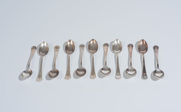 Lotto di undici cucchiaini in argento