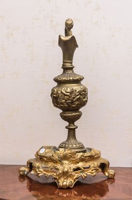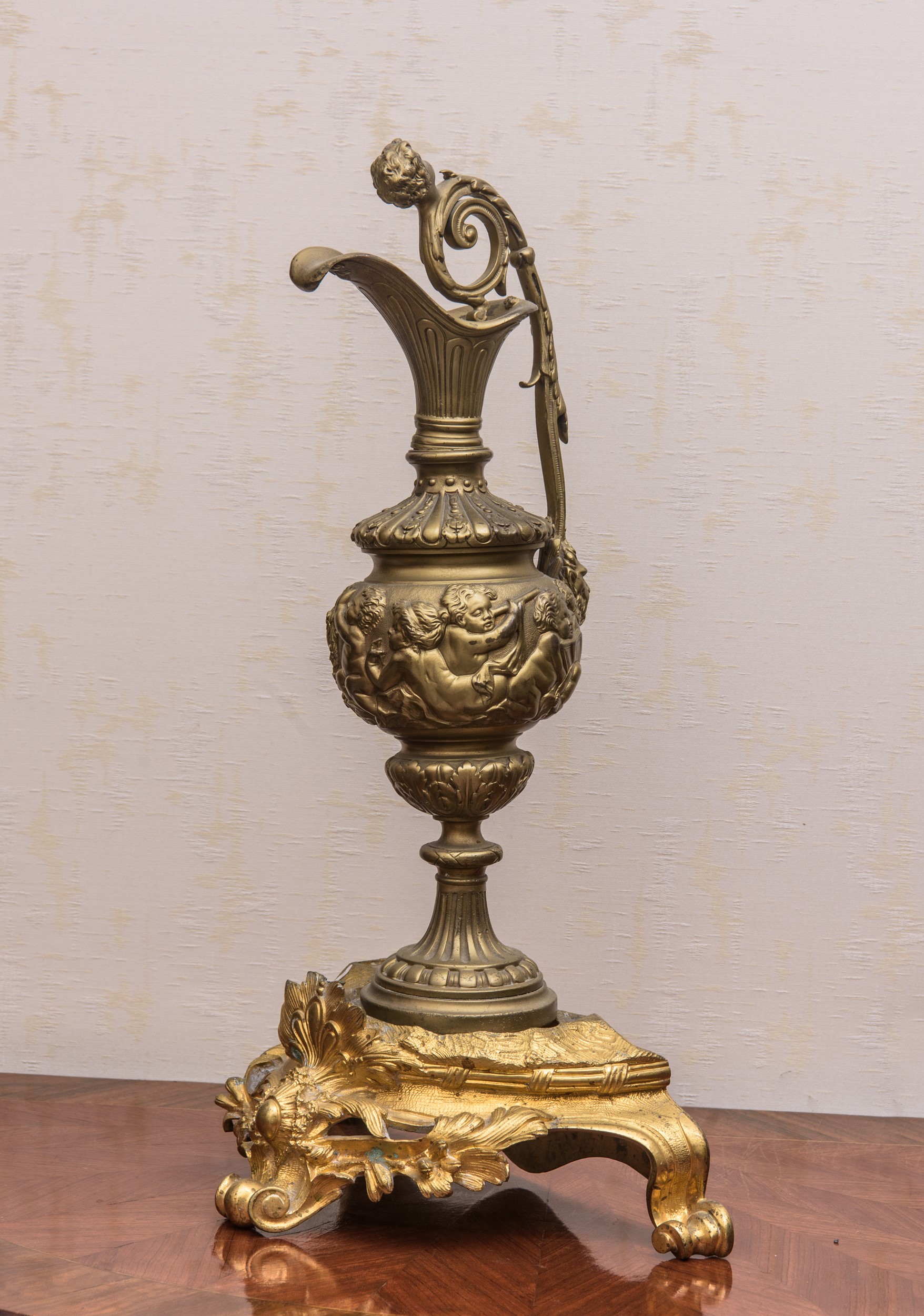 in metallo dorato con putti e base rocaille in bronzo dorato.