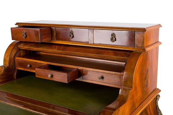 Bureau in mahogany feather, Brianza manufacture, second half of the 20th century