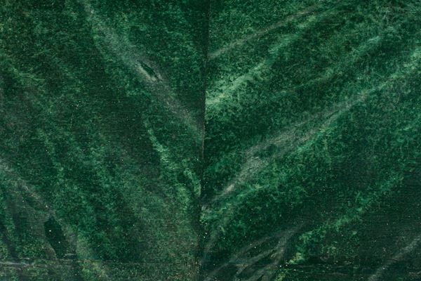 in Louis XVI style, with top in malachite green marbled wood, underlying band decorated with garland motifs and an eagle; tapered legs. Defects and replacements.