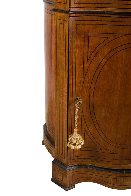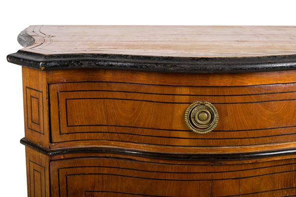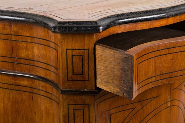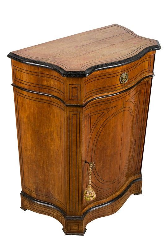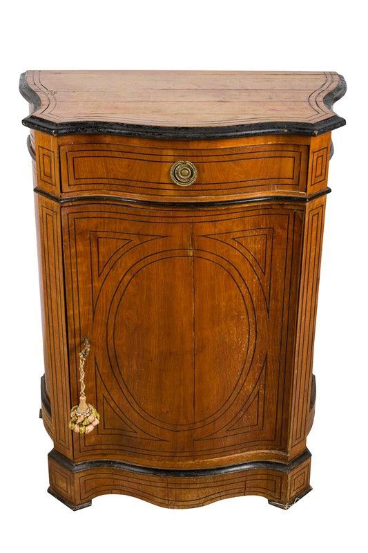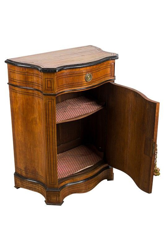 with ebonized frames and threads, rounded shape, with a drawer and a door, defects