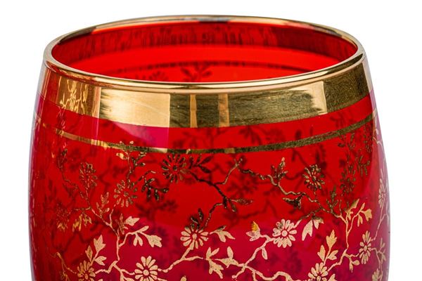 in red Murano glass with 24 kt gold twigs decoration.