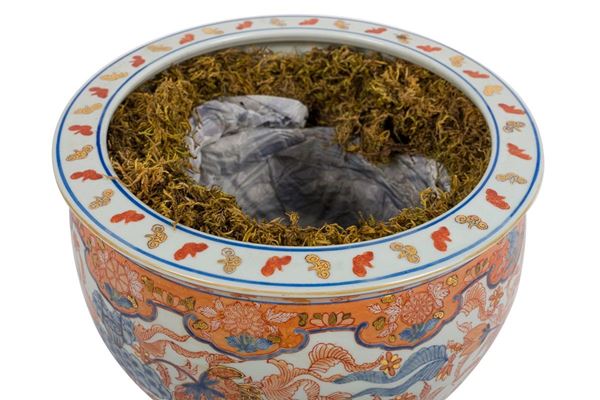 Polychrome ceramic vase, Oriental manufacture, second half of the 20th century