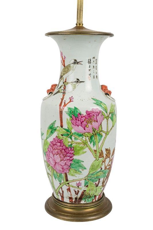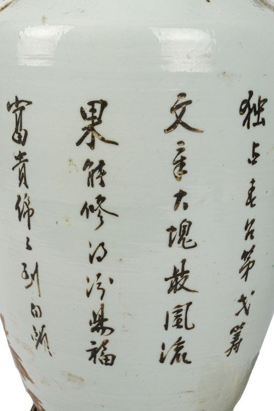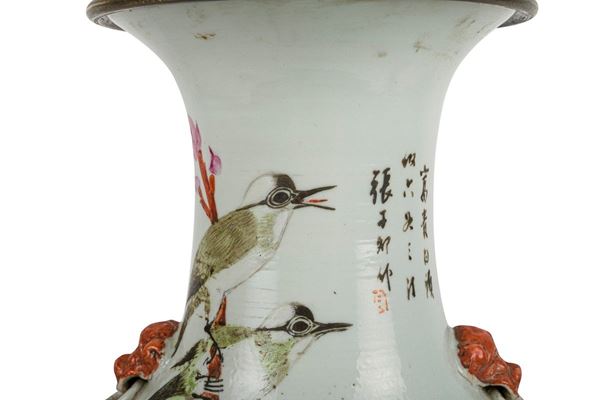 in porcelain, with floral and volatile decorations, bearing inscriptions in Chinese characters.