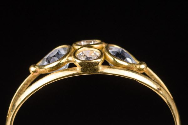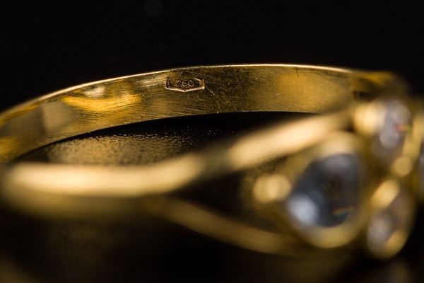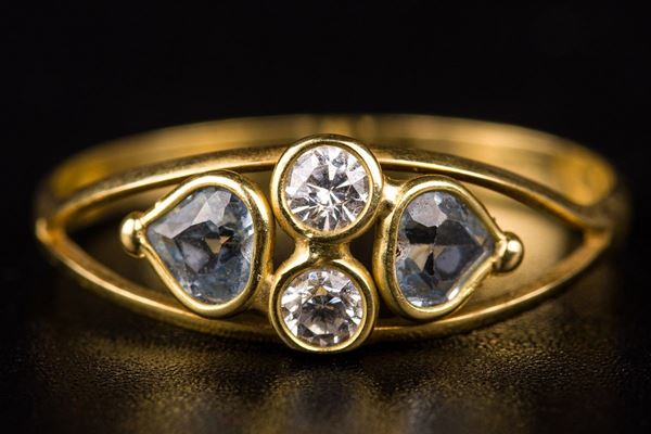 750 18kt yellow gold with white and light blue duralites pinky ring