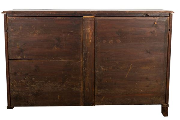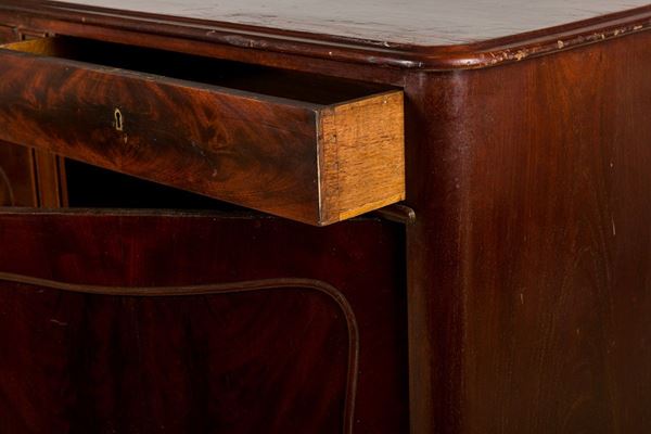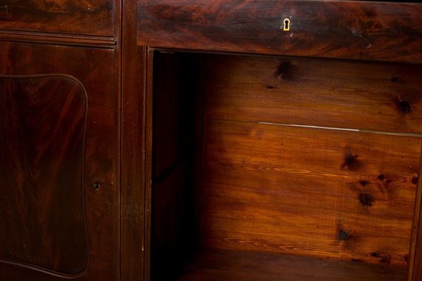 in mahogany, with two doors and two drawers, defects and shortcomings