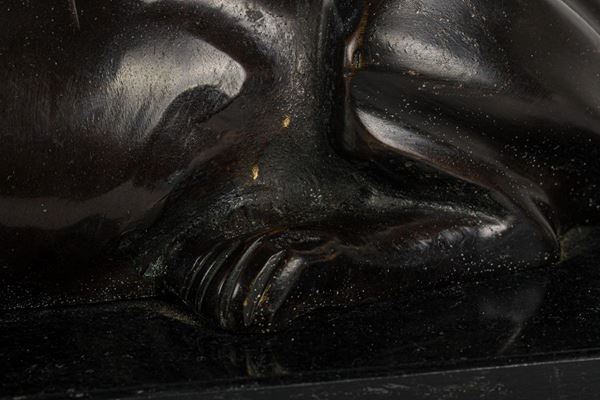 bronze sculpture on black Belgian marble base