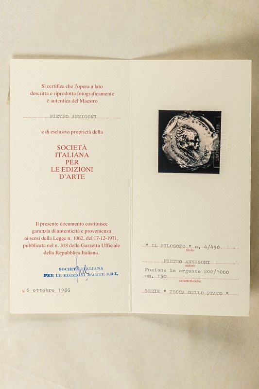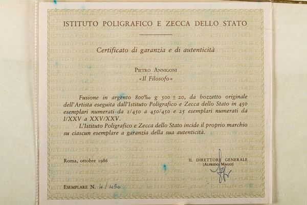 n. 4/450, 800/1000 mm silver casting. 150, "state mint" series, inside display case, with certificate of authenticity