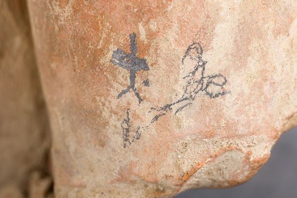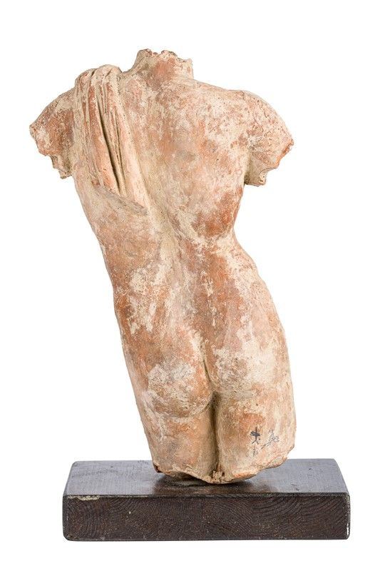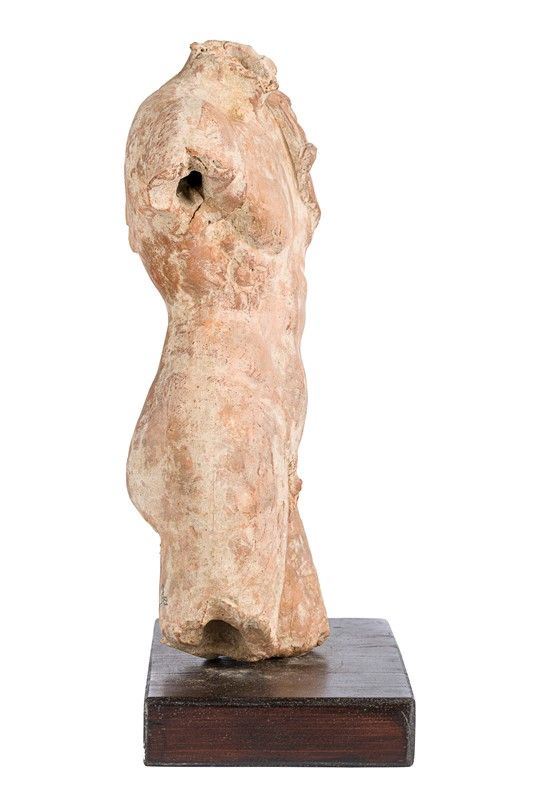 terracotta sculpture, with wooden base