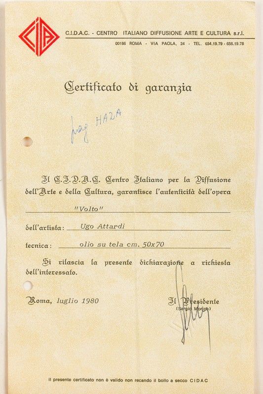 signed and dated on the lower right: Attardi, with guarantee certificate, framed