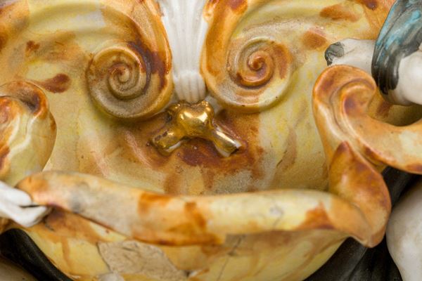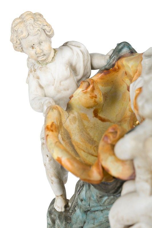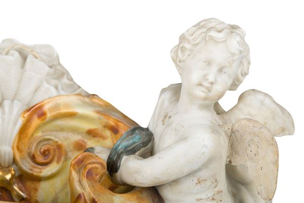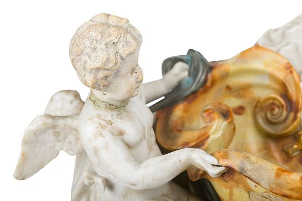 with two putti, in polychrome ceramic, defects, restorations and breakages