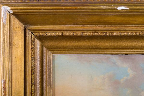 the painting has several points in which the colors of the canvas rise. In gilded frame