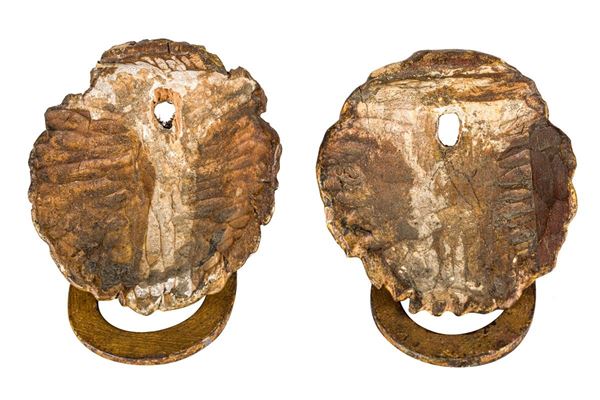 Pair of door knockers in gilded wood, Southern Italy, 19th century