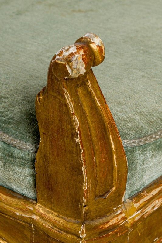 in gilded carved wood, complete with blue velvet cushions, defects, breaks and lacks
