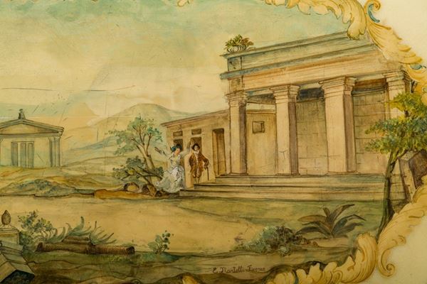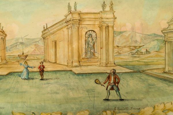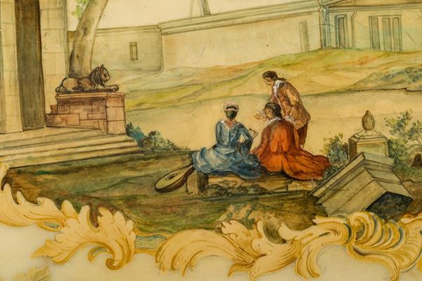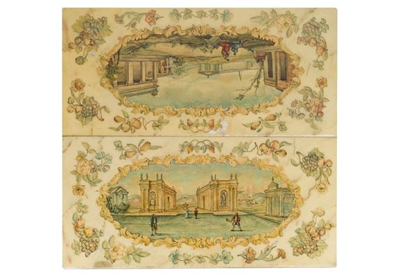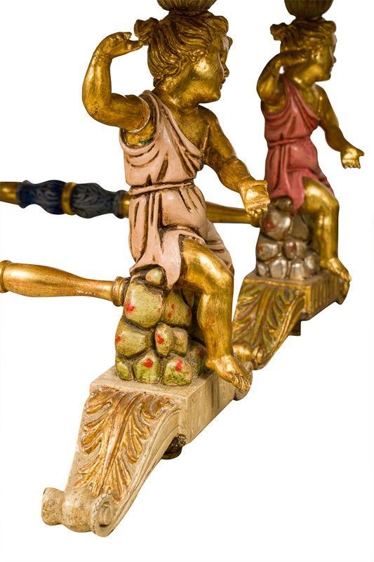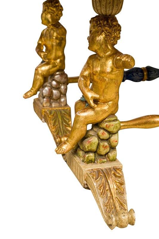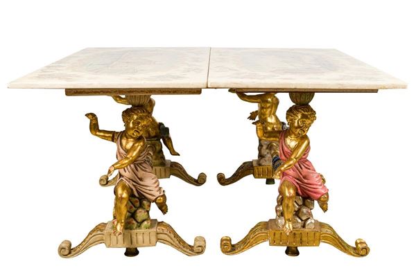with cherubs in gilded wood, tops in Carrara marble covered with painted film, defects and shortcomings