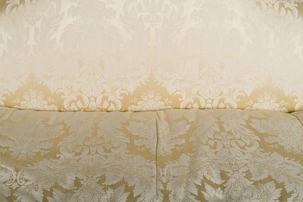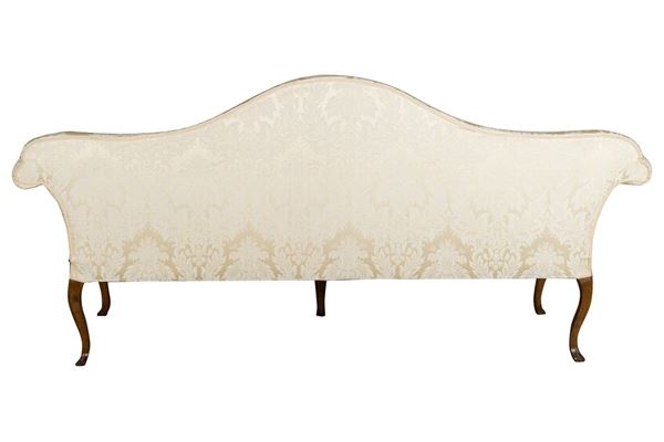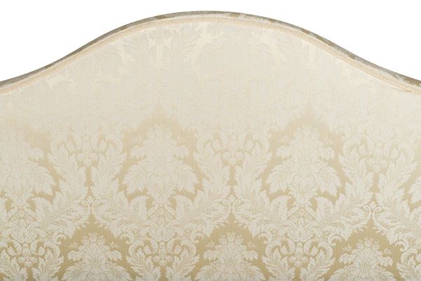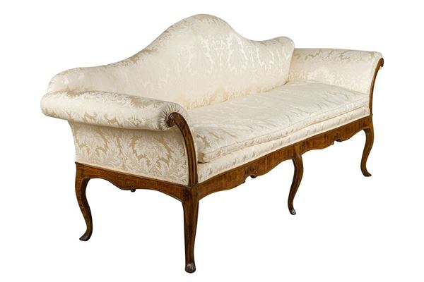 in legno di noce con tappezzeria in seta bianca, gambe arcuate, piccoli difetti