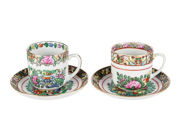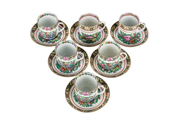 Lot of 6 coffee cups and 6 saucers, Hong Kong, 20th century