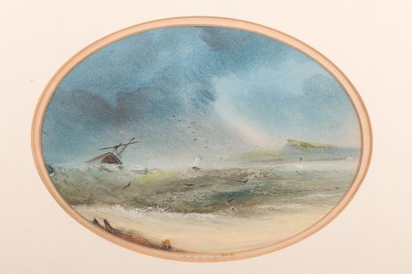 with scenes of sea storms, framed