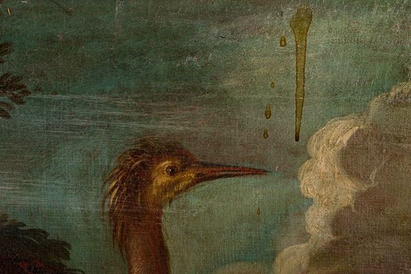 framed. State of conservation not good: Stains, small cuts and drops of color