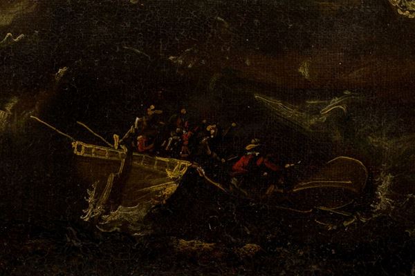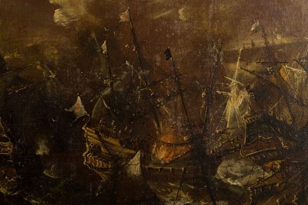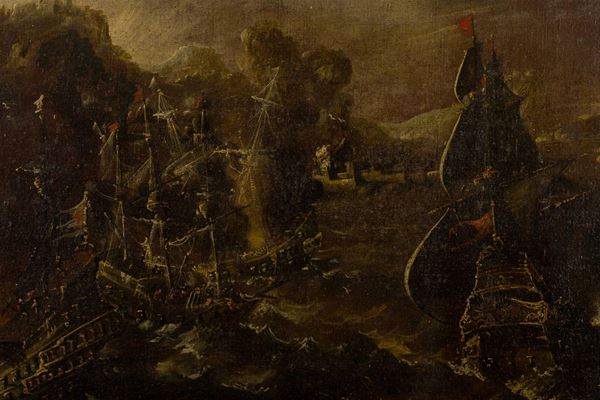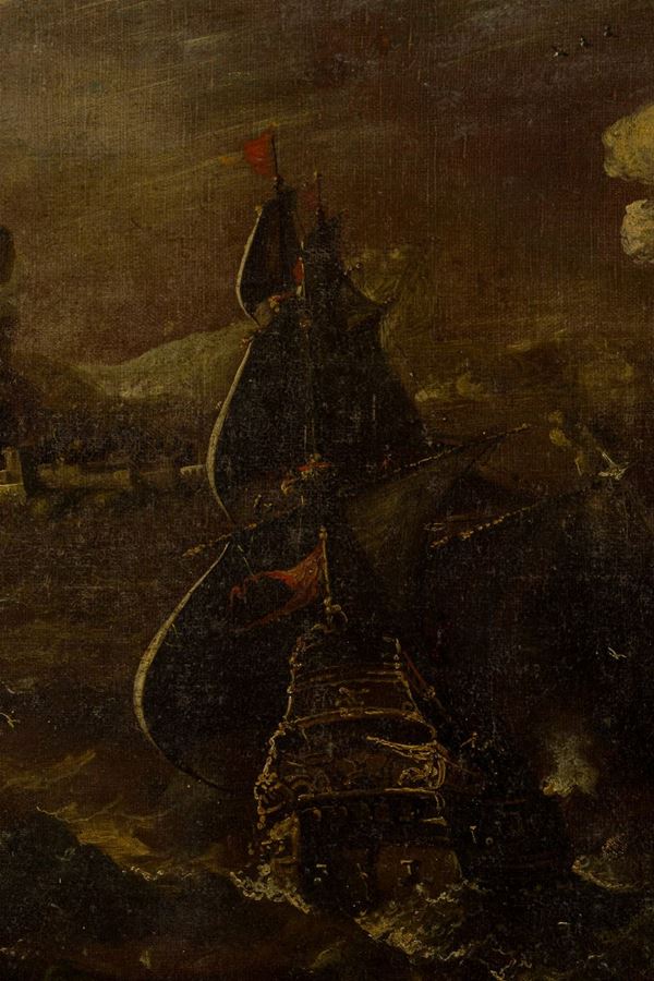 Naval battle with stormy sea, Dutch painter, late 17th century