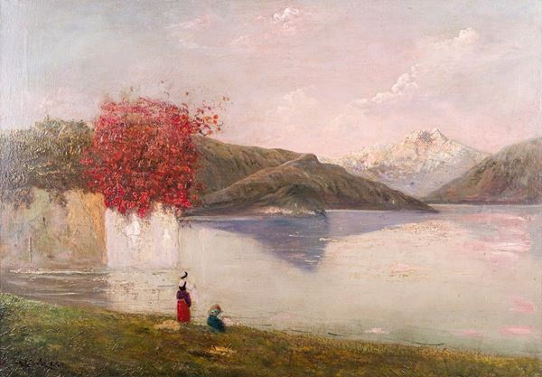 Lake view with washerwomen, 20th century
