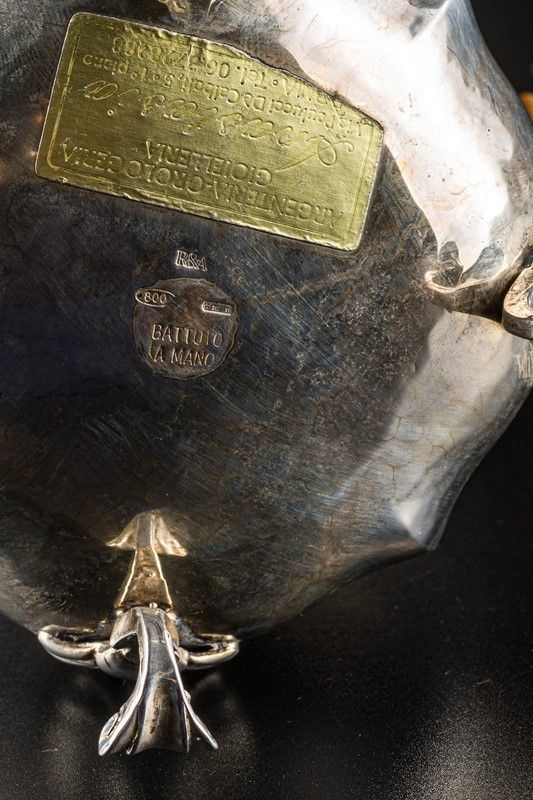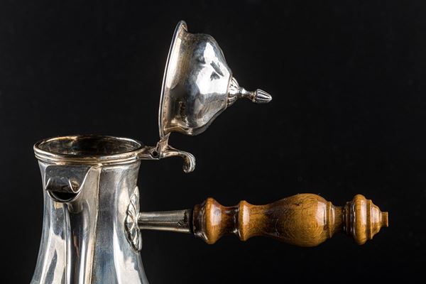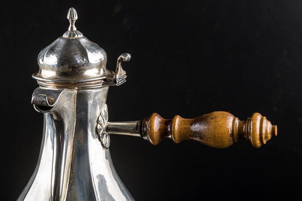 hand-beaten, with palmette decorations, with wooden handle, gross weight 383
