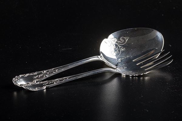 Pair of Sheffield serving cutlery, English manufacture, 20th century