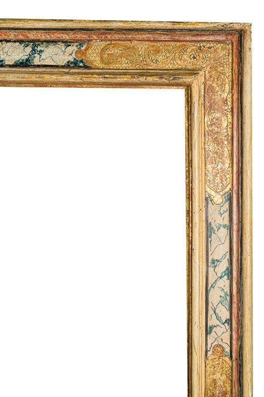 Faux marble lacquered frame with golden graffiti, late 19th - early 20th century