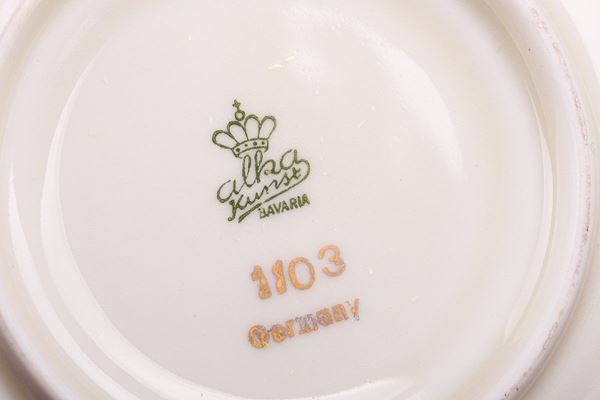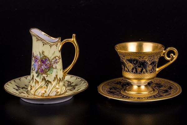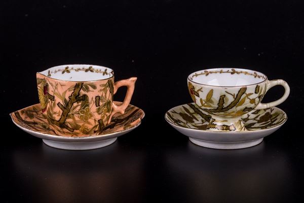 with relative saucers, in painted porcelain