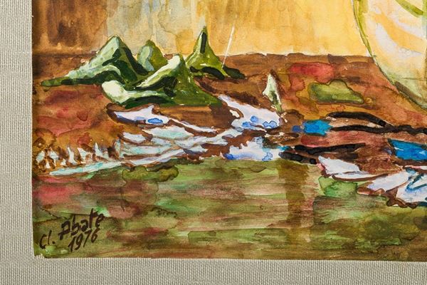 signed and dated: A. Abate / 1976, framed (missing glass)